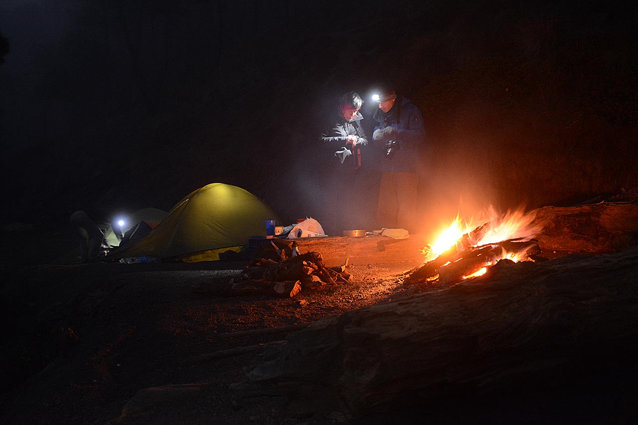 We stoppen na 12 uur iets langer om op een open plek, iets uit de wind.